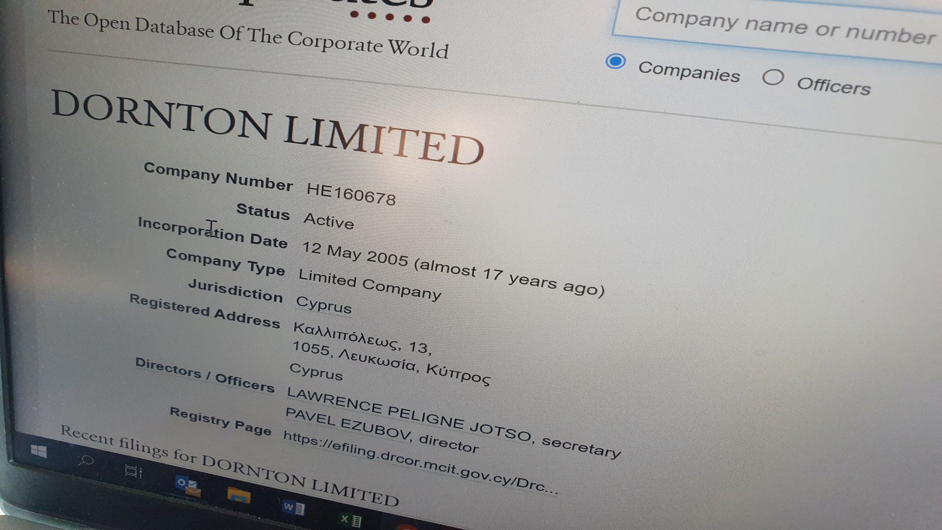 Screenshot der Seite Opencorporates.com