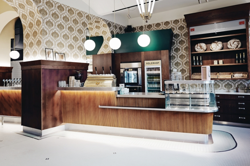 Das Traditionslokal hat zwar jetzt nichts mehr mit dem ursprünglichen Betrieb zu tun und erinnert eher an eine Mischung aus Nahversorger, Café und Salon, aber der Spirit schwingt irgendwo doch noch mit. Und das ist gar nicht bös’ gemeint. Mit gästefreundlichen Öffnungszeiten (6.30 – 2.00 Uhr) und einer ambitionierten Karte haben die Betreiber Manuel Köpf und Andreas Knünz („Wirr“) ein schmuckes Wohnzimmer geschaffen. Schön: Thonet fertigte für den Adlerhof eine limitierte Edition seines Stuhl 218 an. Ausführende Architekten: Artmüller sowie das Interior-Design-Atelier Karasinski x Archiguards.