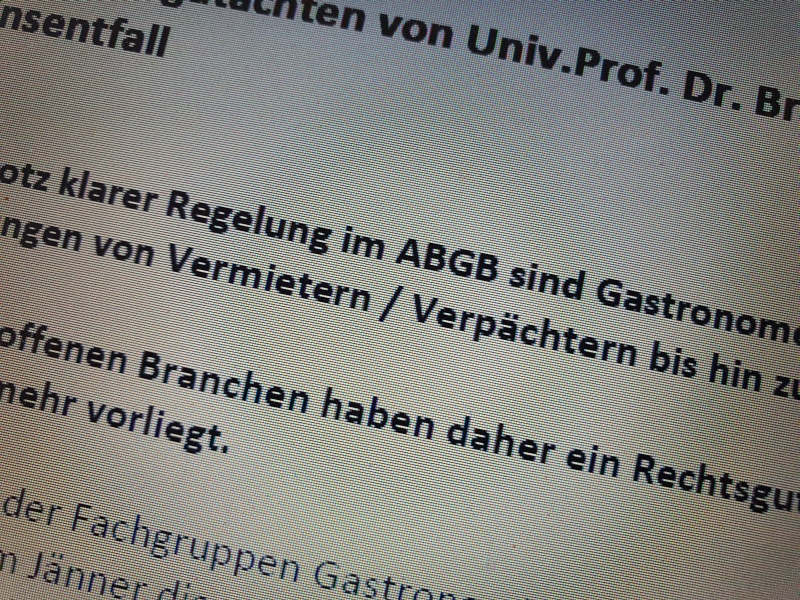 Die Alarmglocken läuten schon länger, das untermauert eine Befragung unter den Bestandnehmern in Hotellerie, Gastronomie und den Kaffeehäusern im Jänner: 58 Prozent der Befragten haben durch die Pandemie Probleme mit ihrem Bestandsgeber betreffend Miete oder Pacht bekommen. Deshalb beauftragten die drei Obleute der betroffenen Fachgruppen Brigitta Zöchling-Jud, Professorin für Zivilrecht und Dekanin der Rechtswissenschaftlichen Fakultät der Uni Wien mit der Erstellung eines Gutachtens. Dessen Resultate lassen die drei Obleute nun durchatmen: Es stärkt die Position der Mieter. Denn - so heißt es im Gutachten - die Preisgefahr liegt in der Pandemiesituation bei den Vermietern und Verpächtern.