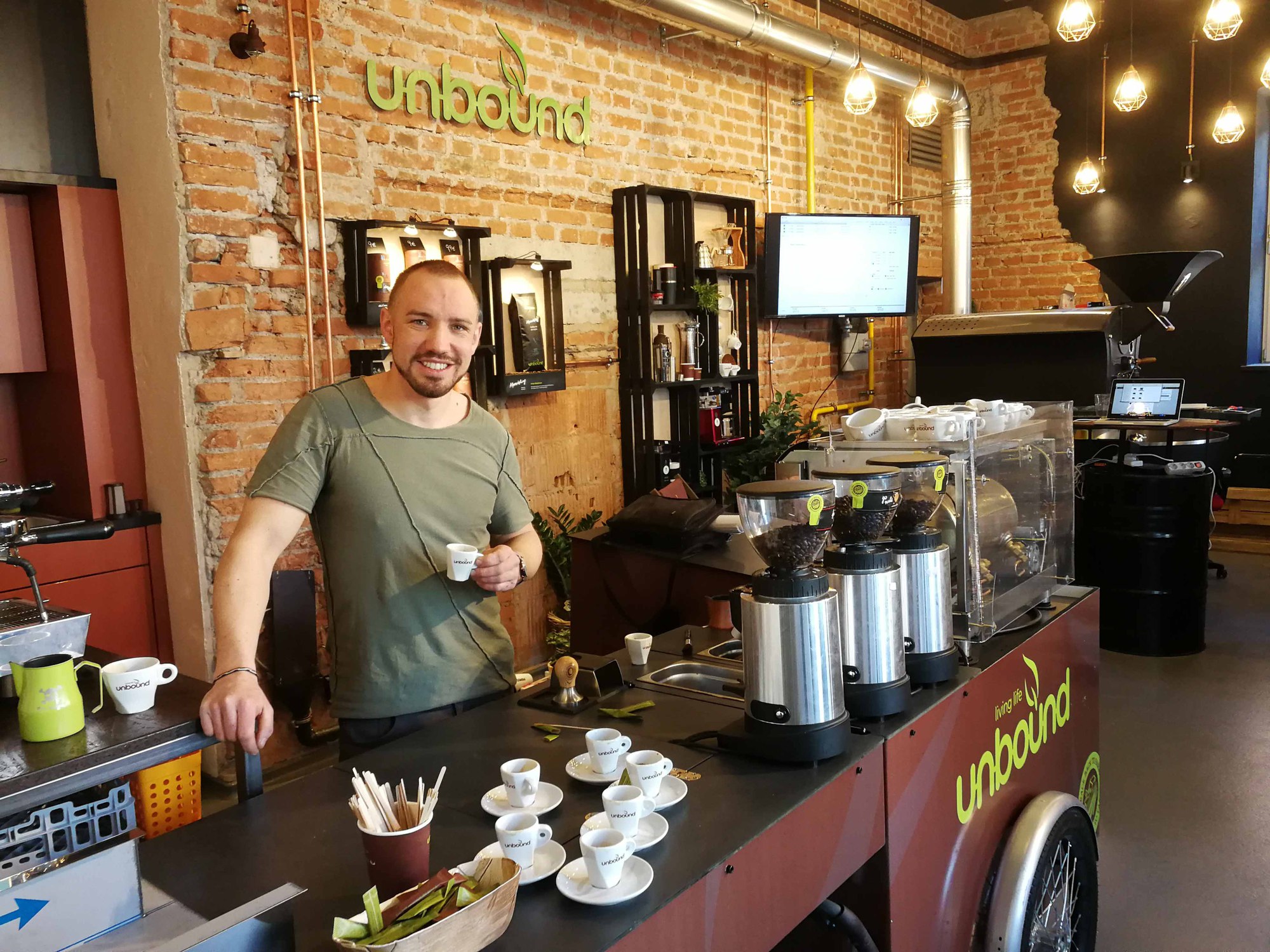 Was die Qualität der Produktion und Rückverfolgbarkeit anlangt, reiht sich Unbound nahtlos in die sogenannte „Third Wave of Coffee“-Bewegung ein, die für die Produktion von hochwertigem Kaffee steht. „Wir sehen Kaffee nicht nur als Produkt, sondern als hochwertiges Genussmittel ähnlich wie Wein.“ Ungebunden zu sein, also unbound, bedeutet für Mayrhofer, die Rösterei-Tore zu öffnen, mit dem Coffee-Bike ins Freie zu fahren, es dort auf den Kleintransporter zu verladen und Events, Messen, Festivals etc. anzufahren.
