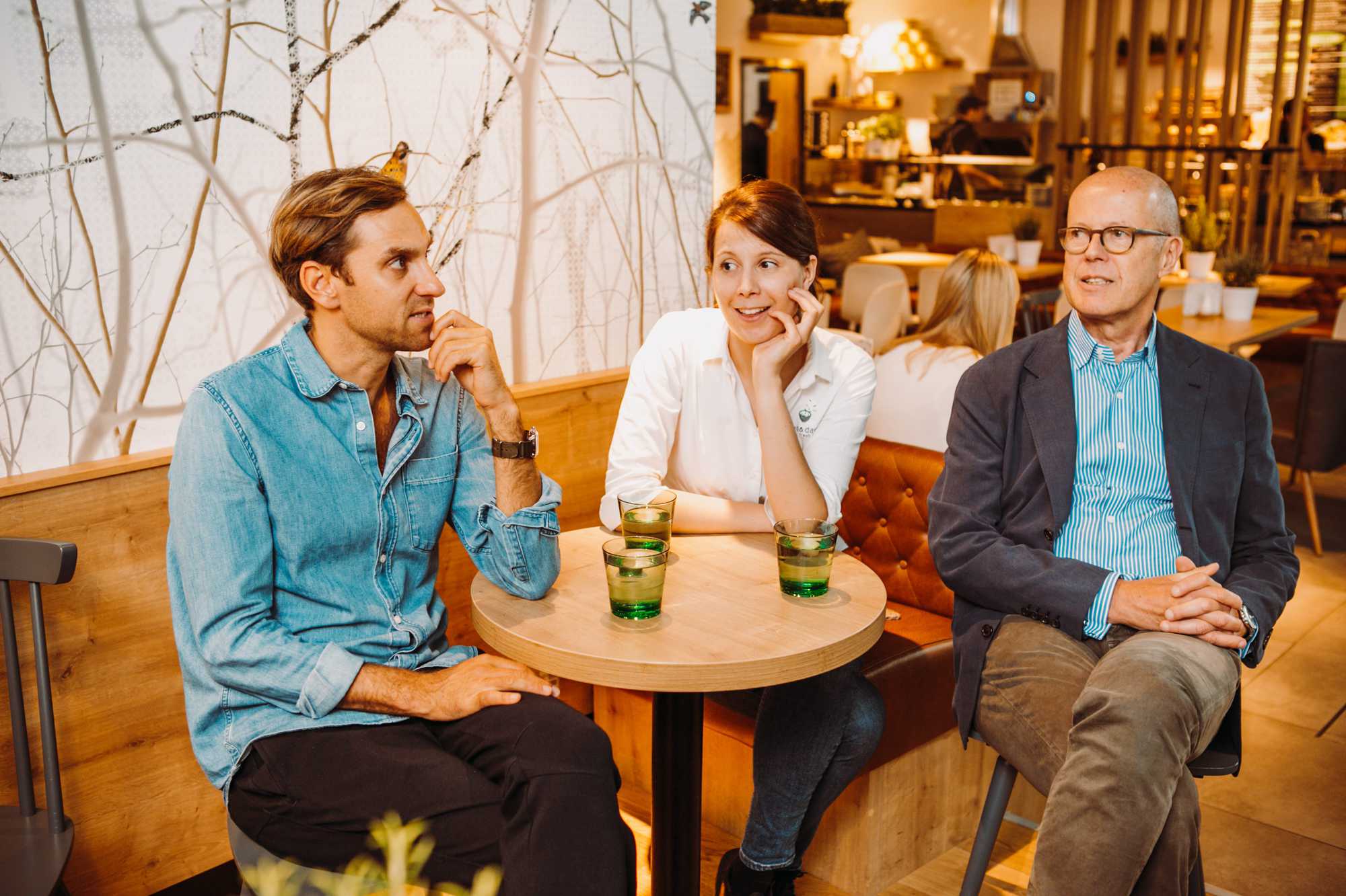 Unternehmensgründer David Baumgartner (links) und die Wiener Franchisenehmer Katharina und Hans Kerres.