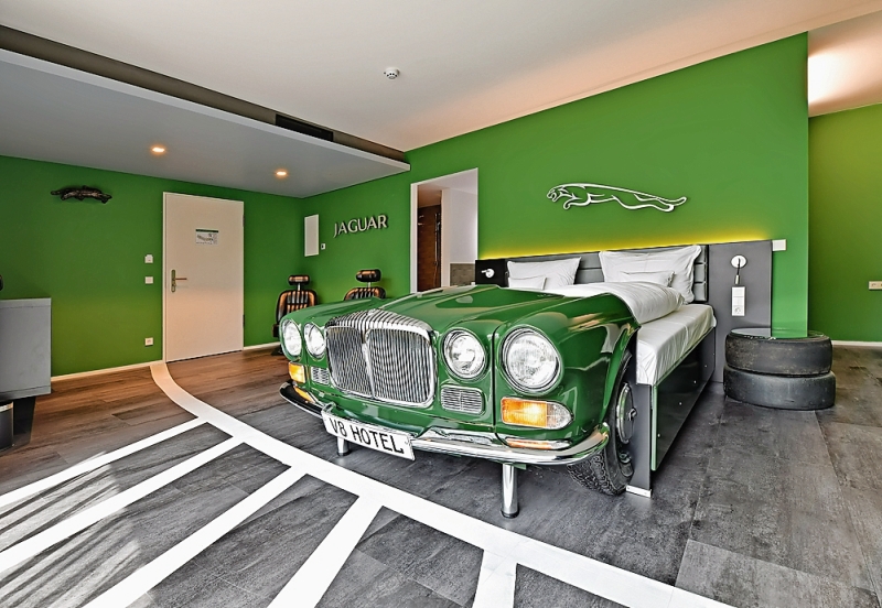 Das V8-Hotel in Stuttgart hat 153 Design- und Themenzimmer. Hier dreht sich alles um heiße Eisen.