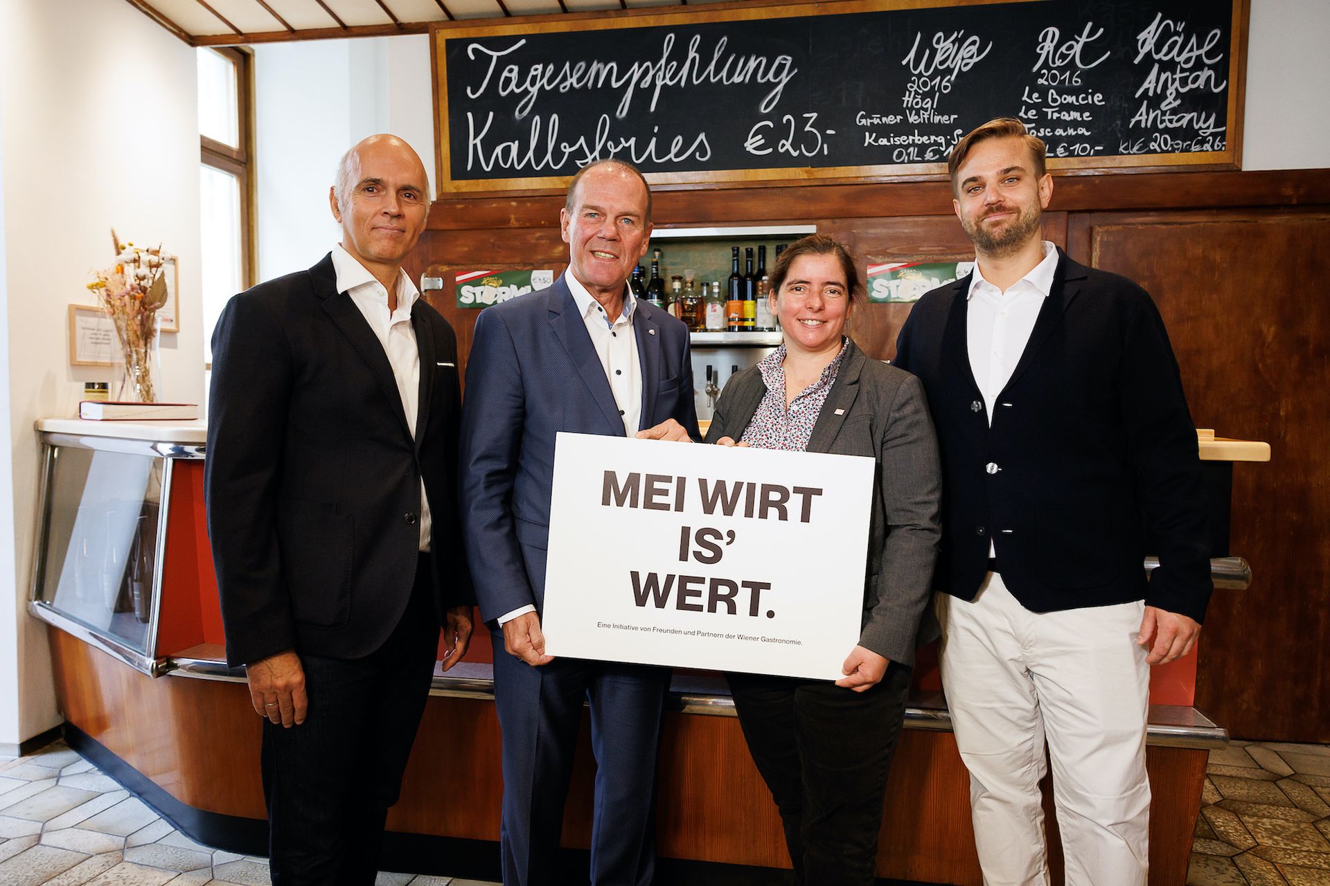Bild oben: v.l.n.r.: Rudi Kobza (CEO Kobza and the Hungry Eyes (KTHE)), Peter Dobcak (Obmann der Fachgruppe Gastronomie Wirtschaftskammer Wien), Martina Haslinger-Spitzer (Fachgruppenobmann-Stellvertretung der Fachgruppe Gastronomie Wirtschaftskammer Wien), Roland Soyka (Gastronom STUWER)