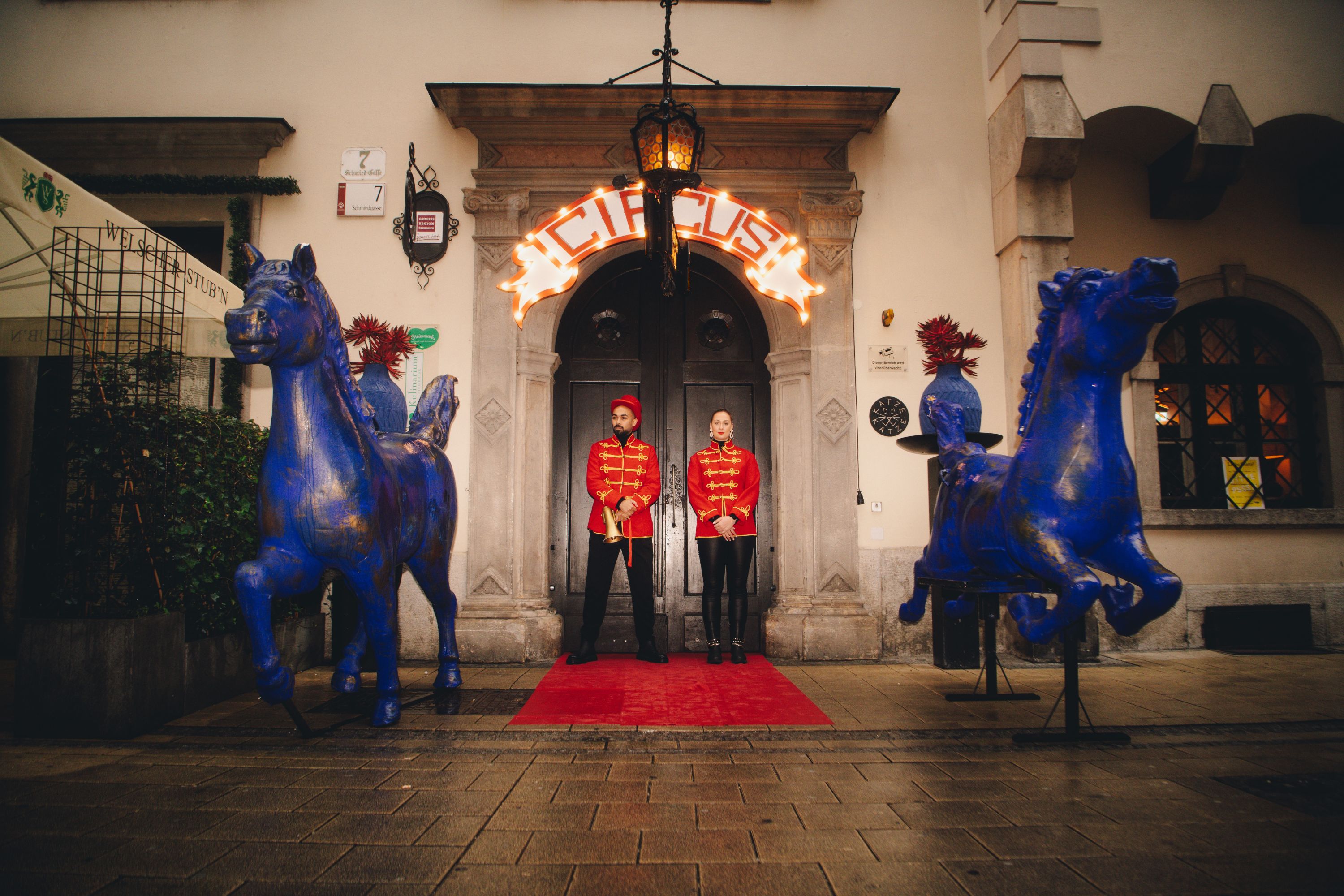 In der Grazer Bar Katze Katze wimmelt es seit Mitte April für ein Jahr lang von Akrobat:innen, Clowns, Artist:innen, und alle zeigen ihre Kunststücke. Hinter dem Affenzirkus steckt Monkey 47, der Gin aus dem Schwarzwald. Wir waren bei der Eröffnung dabei