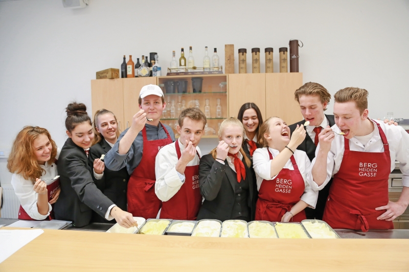 So einen Produkttest macht man auch nicht jeden Tag, auch nicht an einer höheren Tourismusschule. Alle sind mit Begeisterung dabei. Vanilleeis ist ein durchaus emotionales Thema.
