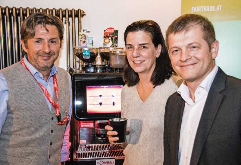 Gastgeber Christiane Wenckheim und Matthias Ortner nebst Günther Stölner (Cimbali Mitteleuropa-Chef).