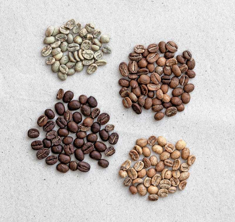 Bohnen unterschiedlicher Röststufen, nicht alle schmecken wirklich gut.