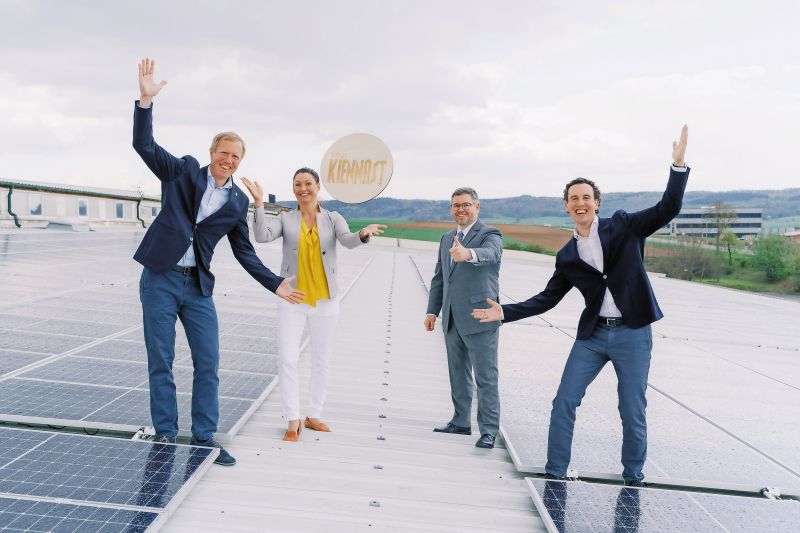 Zur Eröffnung begaben sich sowohl Cornelia Daniel (Tausendundein Dach) sowie LR Ludwig Schleritzko mit Julius und Alexander Kiennast in luftige Höhen (siehe Foto oben). Die Installation der Photovoltaikanlage spart übrigens künftig fast 130.000 kg CO2 ein: Das entspricht immerhin einem Wald mit 4.500 Bäumen.