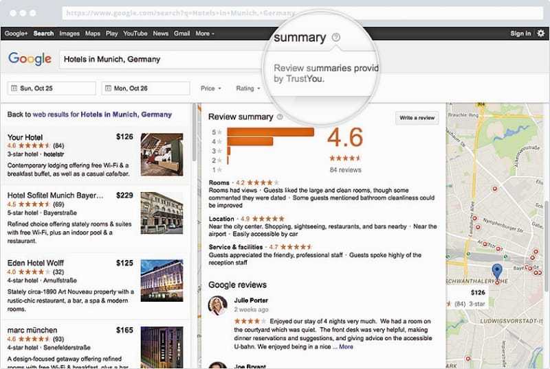 Bewertungen von TrustYou Stars auf Google.