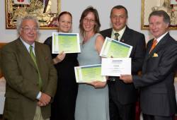 v.l.n.r.: Bruno Coudry, Managing Director Europe central&Orientale&Scandinavie Accor Hospitality; das Siegerteam Ibis Wien Messe: Renate Wolfsbauer, Front Office Manager; Claudia Stachel-Stindl, Direktionsassistentin; Gerhard Tuschetschläger, Küchenchef; sowie Hans-Michael Leise, Generaldirektor Accor Hospitality Austria.