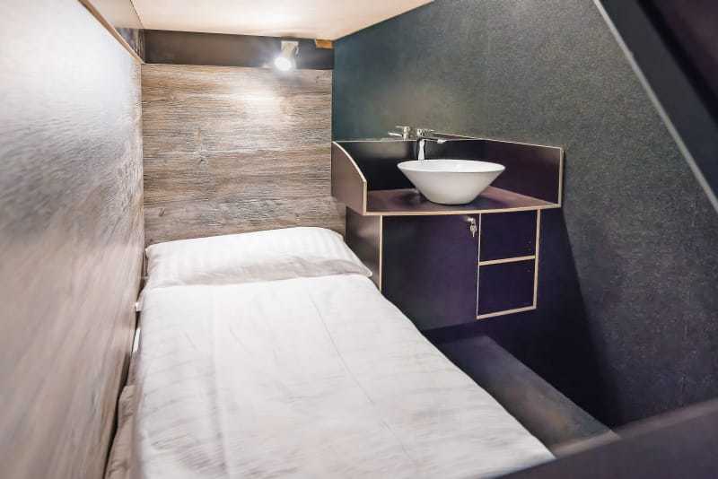 Das Konzept klingt fürs Erste nicht sonderlich neu: Wenig Platz, kleine Zimmer, in zentraler Lage, zu einem möglichst kleinen Preis. Zur Zielgruppe im ersten BoxHotel in Göttingen gehören Städtereisende, Junge  oder Kurzentschlossene. „Hier werden wir sehen, wie unser Angebot angenommen wird”, sagt Blume in einem Interview mit dem „Göttinger Tageblatt”. Und: „Ich liebe es, Märkte zu erschrecken”. Was er damit meint wird einem klar, wenn man sich das Haus näher ansieht: Die (Schlaf-)Boxen haben eine Grundfläche von 2,8 mal 1,5 Metern und widersprechen jeder Expertenempfehlung in Sachen Mindestgröße für Hotelzimmer. Es gibt Zimmer mit Duschkabine, und solche, die lediglich ein Waschbecken im Zimmer haben. WCs gibt es ausschließlich außerhalb der Boxen, also auf dem Gang. Für die Gäste der duschlosen Zimmer gibt es die Möglichkeit, einen Gemeinschaftswaschraum zu benützen. Auf zwei Etagen befinden sich zwei Betten (siehe Foto). Fenster? Die gibt es nicht. Dafür gibt es großformatige Fotoprints an den Wänden, die die Fensterlosigkeit ein wenig erträglicher machen sollen. Blume: „Diese Boxen sind nicht zum Verweilen gemacht. Es geht um Menschen, die eine Stadt besuchen und einen Platz zum Übernachten brauchen”.