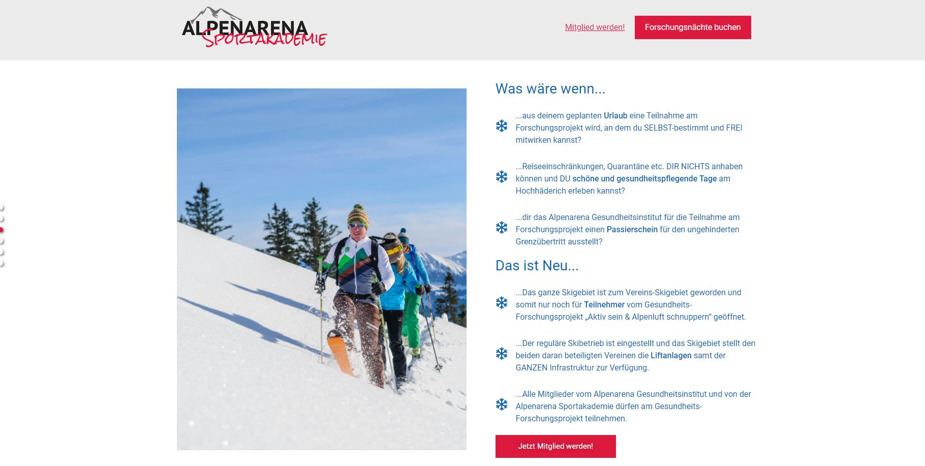 Besonders originell zeigt sich ein Betrieb in Vorarlberg: Das Almhotel Hochhäderich wirbt gemeinsam mit dem Skigebiet und bietet eine Art Forschungsaufenthalt an. Hotel und Skigebiet sind für die Allgemeinheit geschlossen, allerdings an zwei Vereine vermietet. Gegen eine Mitgliedsgebühr (30 Euro) werden aus Nicht-Wissenschaftlern schlagartig Forscher, die an einem "Projekt" mitarbeiten (siehe Screenshot).