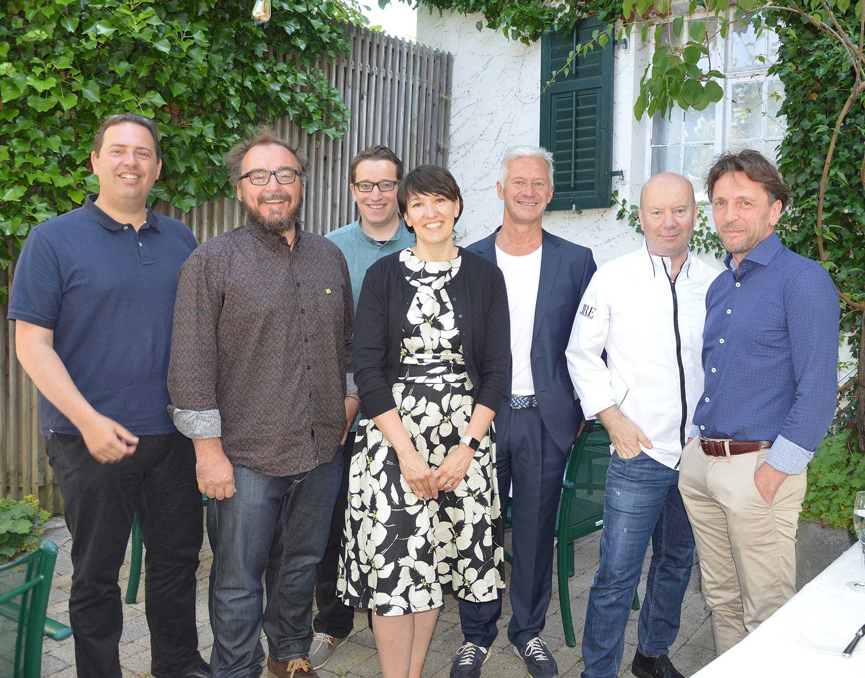 Manuel Bitschnau ,GF Montafon Tourismus GmbH, Elmar Müller, Prokurist der Kleinwalsertal Tourismus eGen., Urs Treuthardt, GF Bodensee Vorarlberg Tourismus, Kerstin Biedermann-Smith, GF Alpenregion Vorarlberg Tourismus, Andrew Nußbaumer, Stv.-Spartenobmann Tourismus und Freizeitwirtschaft, Michael Schwarzenbacher, Restaurant Mangold) und Harald Furtner, Spartengeschäftsführer Tourismus und Freizeitwirtschaft v.l.