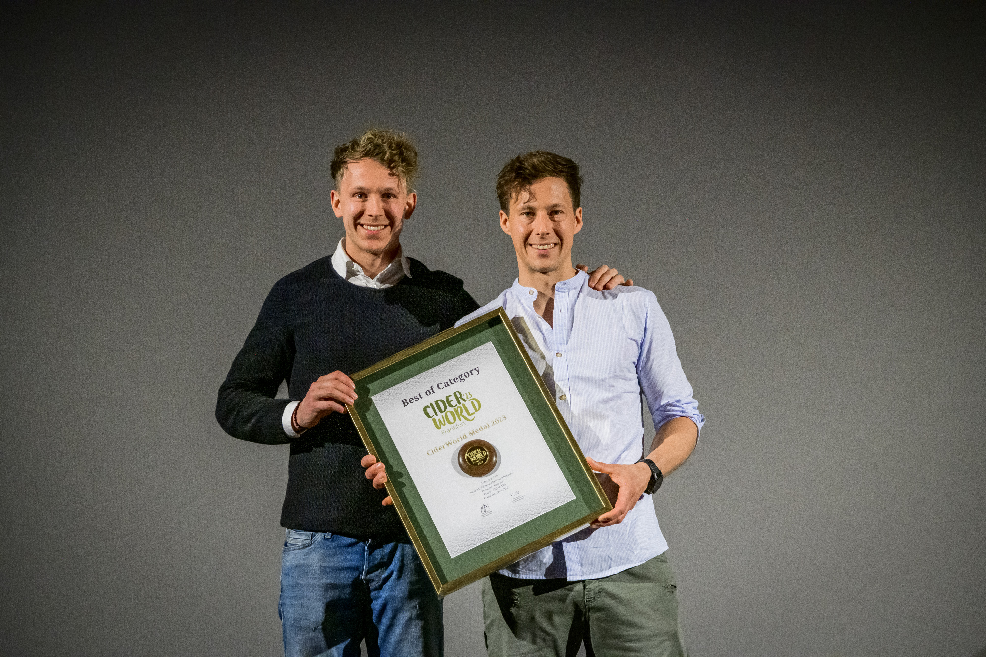Kühbrein konnte am 28.04.2023 auf der Cider World mit dem Produkt „Maschanzker“ den renommiertesten Branchenwettbewerb der internationalen Apfelwein- und Cider-Szene für sich entscheiden und bringt Österreich neben weltbekannten Cider-Nationen wie Frankreich oder England auf die Bildfläche. Mit 120/120 Punkte in der Kategorie „Cider still“ war der sortenreine Apfelwein für die internationale Fachjury das Maß aller Dinge. „Die Tatsache, dass die fruchtige, klare Linie, die wir bei Kühbrein in unseren Apfelweinen verfolgen, internationale Juroren zur Höchstnote greifen lassen, ist für unsere Arbeit die schönste Bestätigung“, so Produzent & CEO David Kargl. Dem jungen Team von Kühbrein gelang dieses Jahr etwas Einzigartiges: Noch nie in der Geschichte des Cider World Awards konnte ein Produzent seinen Titel verteidigen. „Wir sind wahnsinnig überwältigt, dass unser Produkt als einziges im Bewerb mit der maximalen Punkteanzahl ausgezeichnet wurde. Bei der Messe am Tag nach der Verleihung stellten sich die Menschen aus aller Welt bei uns für ein Glas „Maschanzker“ Apfelwein an. So etwas habe ich noch nie erlebt“, schildert Peter Kargl, Head of Marketing & Sales von Kühbrein.