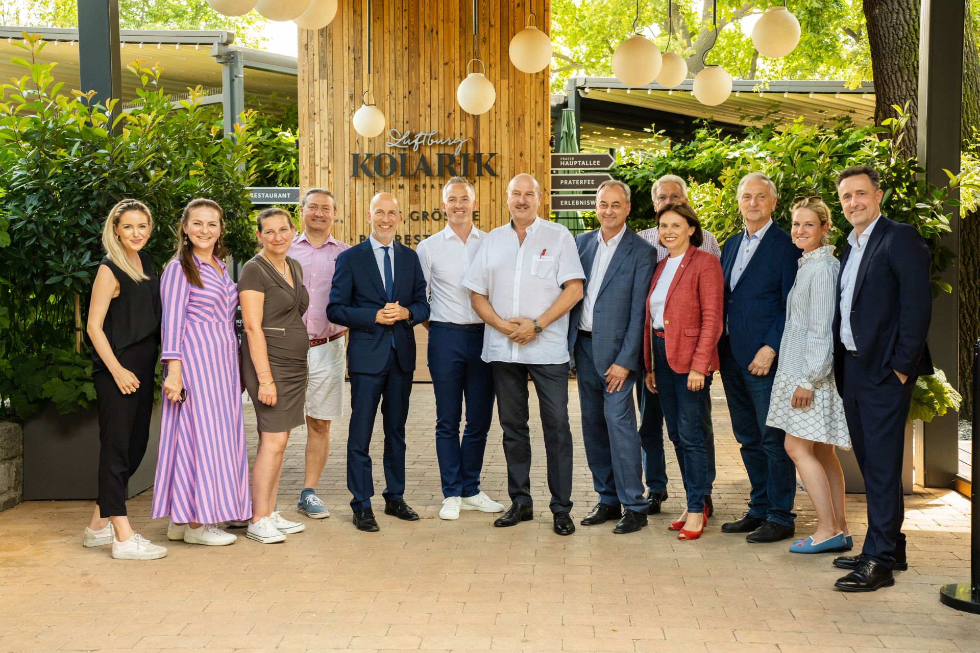 Bild oben: Die Luftburg begrüßte die Delegation: (v. l.) Viola Pondorfer, Praterverbandspräsidentin Silvia Lang, Sabine Holzdorfer, Filip Simek, Minister Martin Kocher, Paul Kolarik, Praterverbandsvizepräsident Fredo Nemec, Michael Prohaska GF Prater Wien, Hubert Pichler, Tourismus Staatssekretärin Susanne Kraus-Winkler, Karl Kolarik, Anna Kleindienst-Jilly, Spartenobmann Markus Grießler