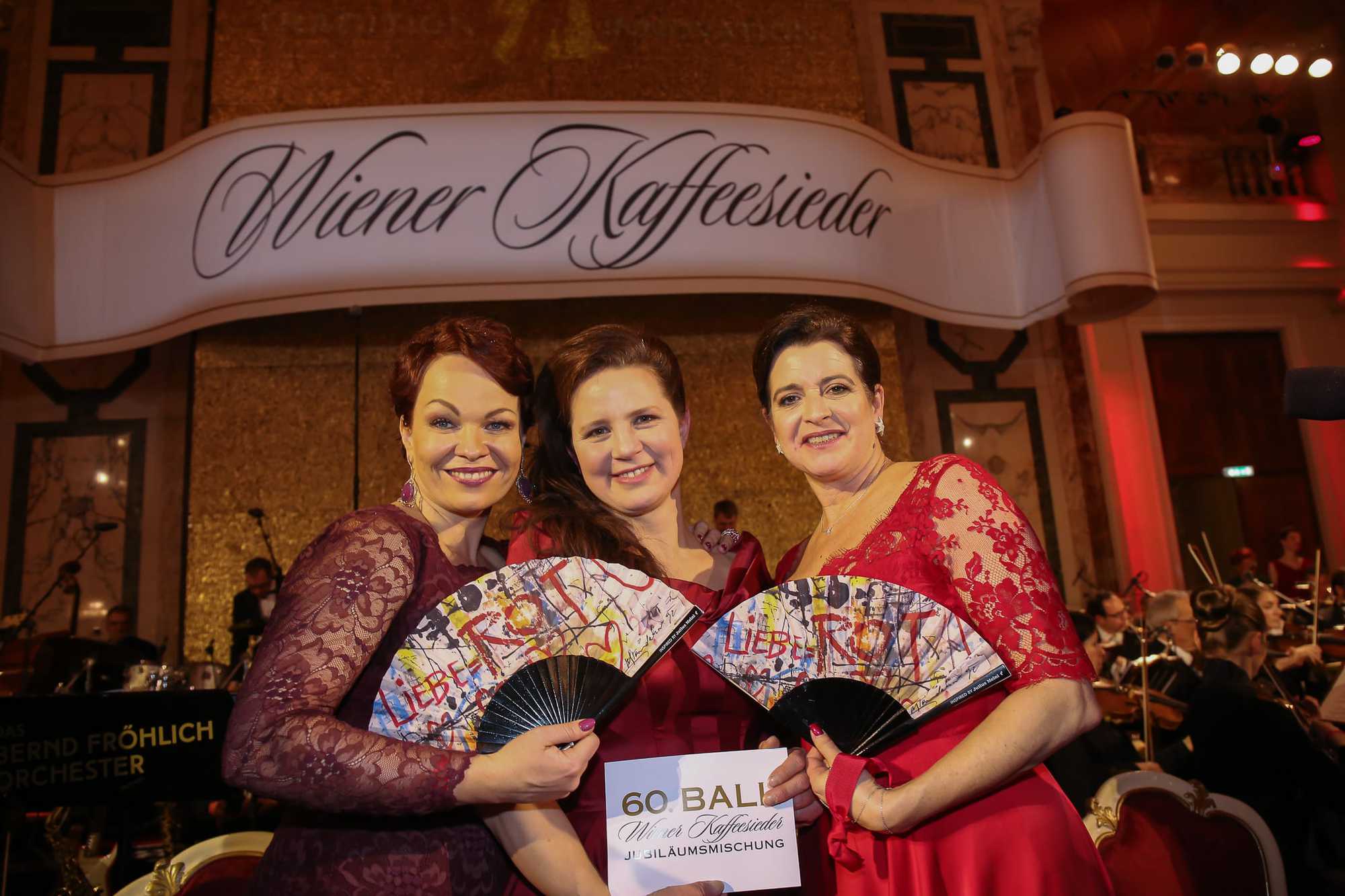 „Die Generation unserer Eltern hat das Fundament gelegt, auf dem wir ein nobles, elegantes und schönes Fest, ein echtes Kaffeesiederfest, feiern können. Dafür bin ich sehr dankbar“, freut sich Anna Karnitscher. Sie wurde für den Jubiläumsabend ebenso wie ihre Kolleginnen Christina Hummel und Nicole Hostnik von Stardesignerin Lena Hoschek mit Ballroben aus roter Seide ausgestattet.