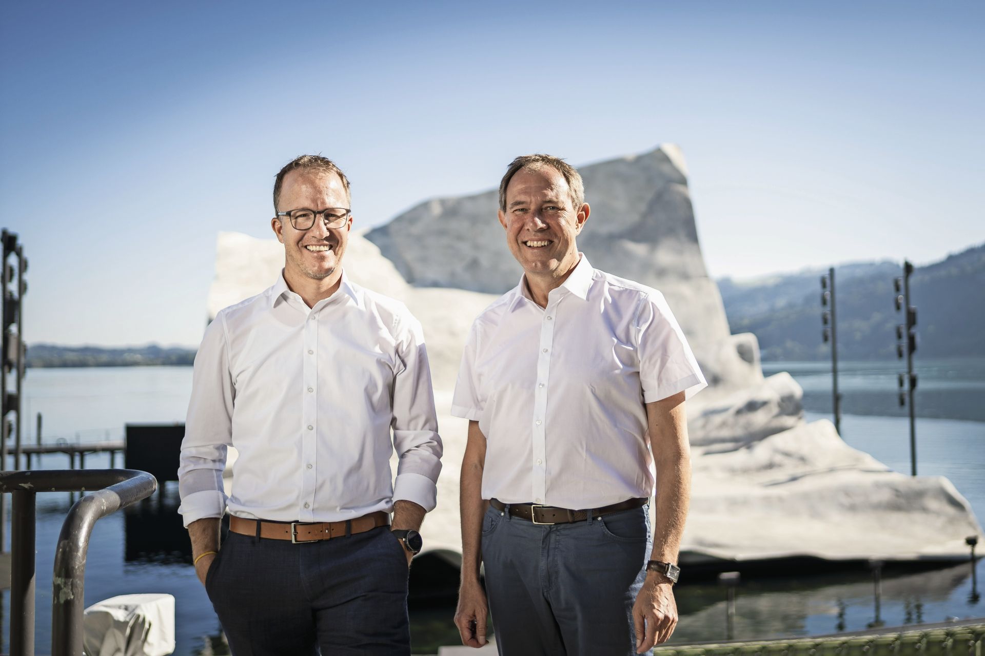 Landesrat Christian Gantner (l.) und VT-Geschäftsführer Christian Schützinger trafen sich an der Bregenzer Seebühne zum Interview mit der ÖGZ. Nur einige Wochen davor wurde die neue Tourismusstrategie vom Landtag beschlossen. Wir wollten nun wissen, was genau drinsteckt.